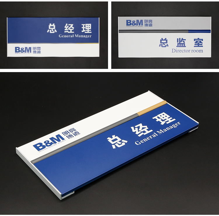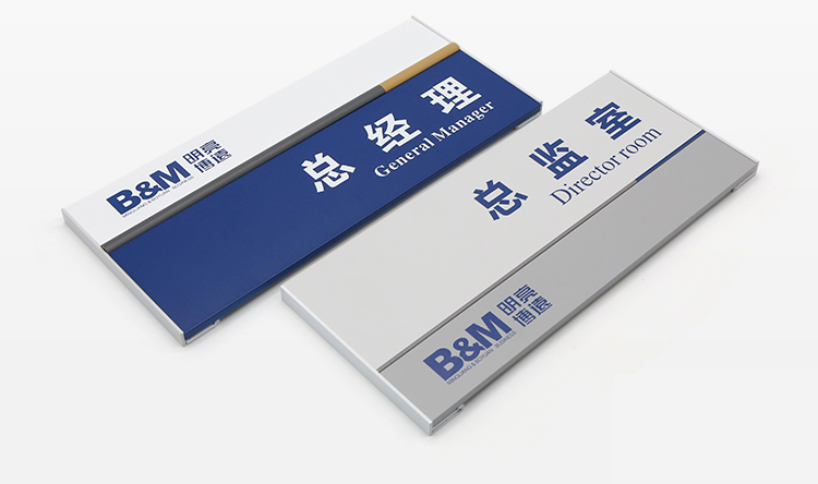 常用辦公室門牌材質(zhì)有亞克力、鋁型材、金屬烤漆、不銹鋼等,單獨(dú)使用或組合搭配。